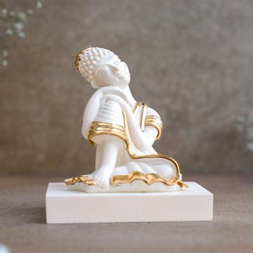Exquisite White & Gold Lord Buddha Statue (4 Inch)